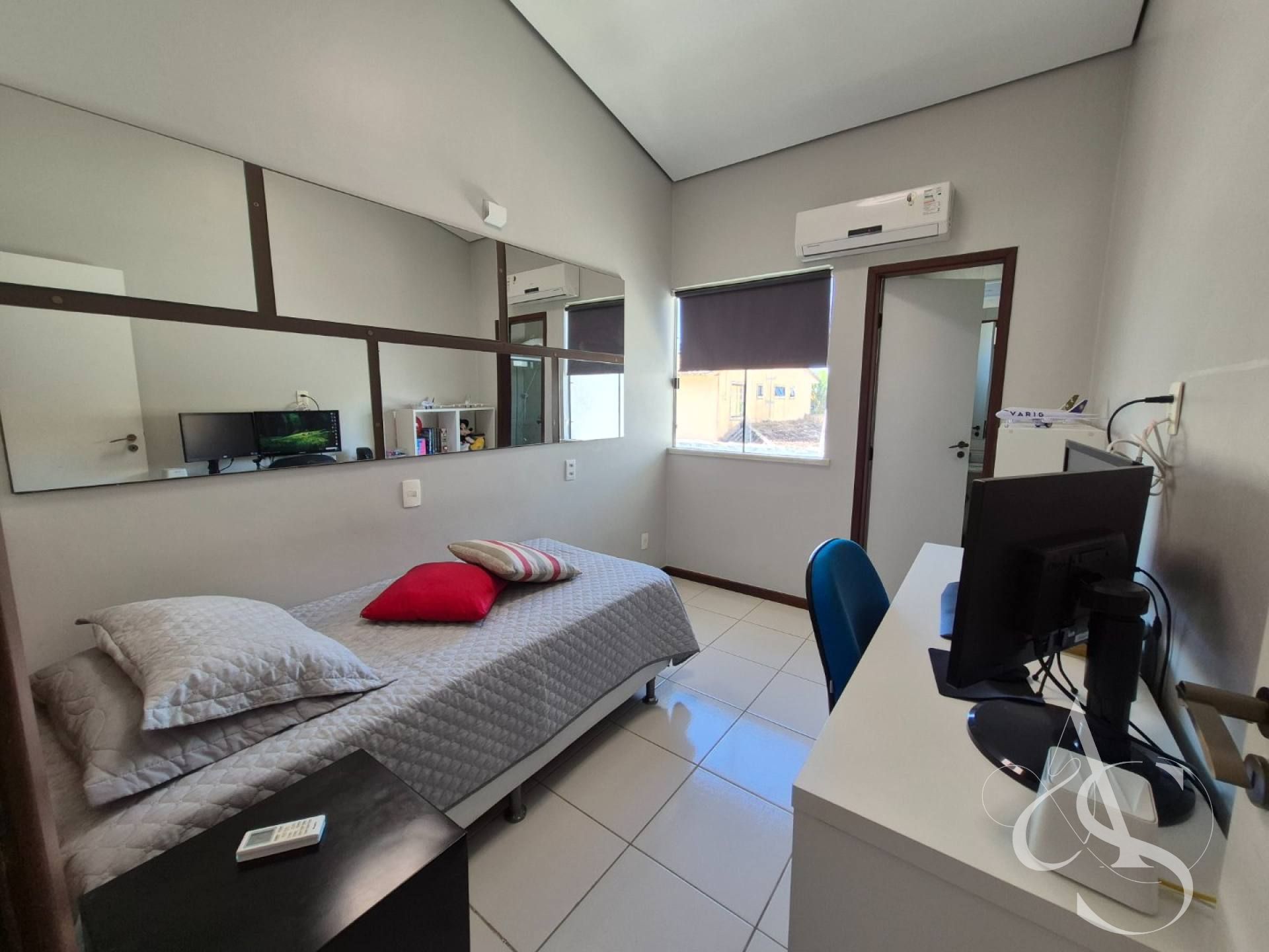 Três suítes, todas com ar-condicionado, além de amplo espaço para home office, garantindo privacidade para trabalho em casa.